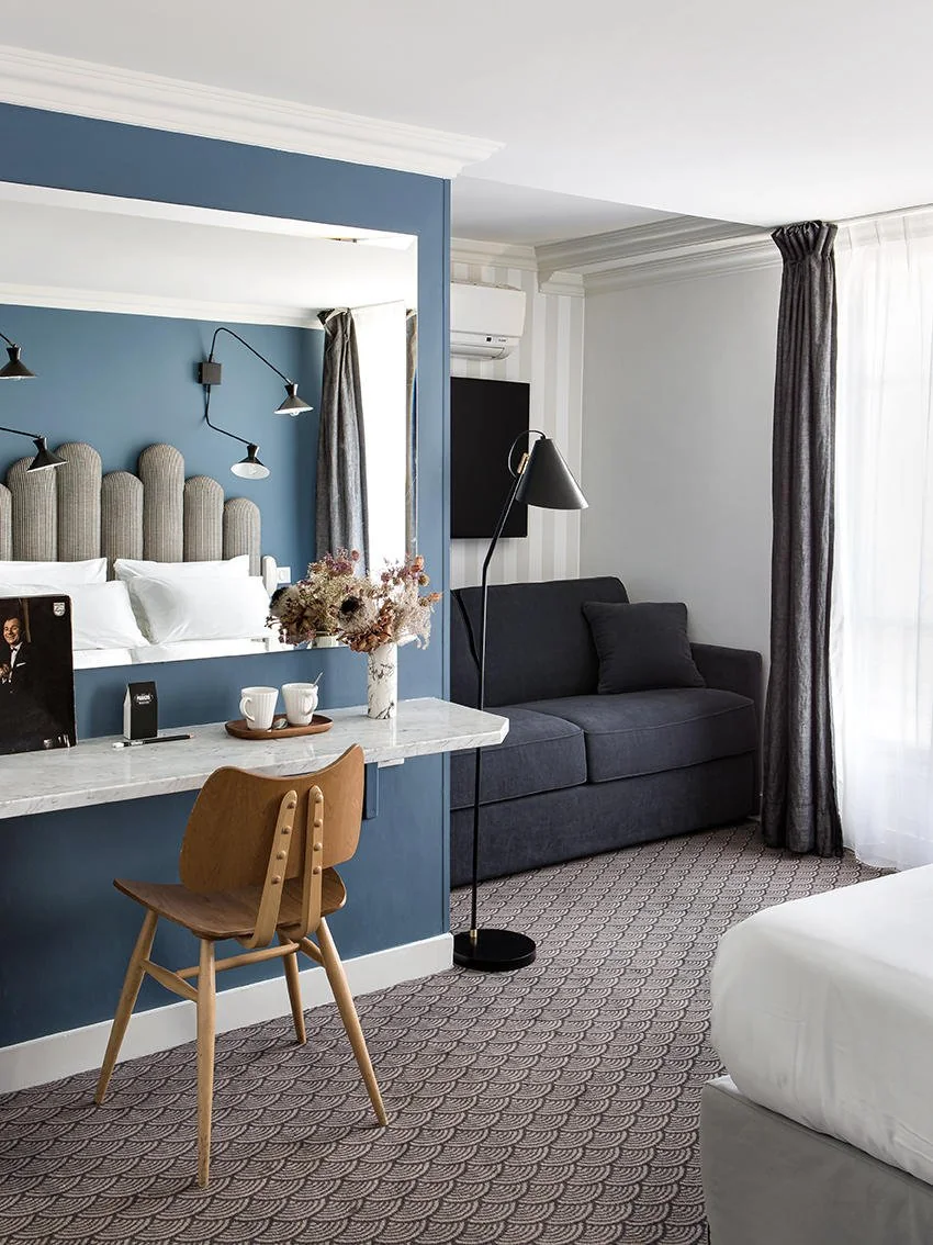 Vous venez de vivre une journée en ville ? Posez-vous quelques instants sur le canapé, profitez d'une chambre spacieuse de 19 m2 avec lit Queen Size. Une salle de bain attenante, moderne et équipée d'une baignoire reposante. Reposez-vous, vous êtes au calme avec vue sur notre cour intérieure.