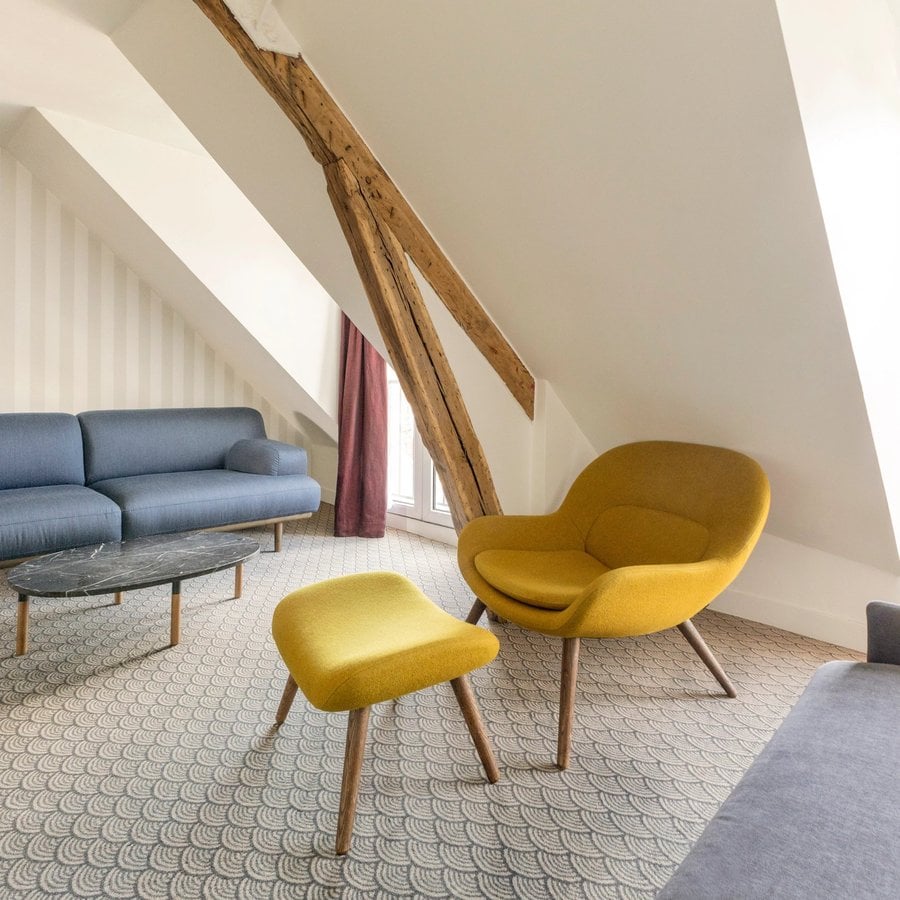 Vous allez tomber sous le charme de cette Junior Suite avec une vue imprenable sur le Sacré Cœur. Une chambre spacieuse de 33m2 rien que pour vous, avec un lit king size et un espace salon, une salle de bain attenante équipée d'une baignoire.
