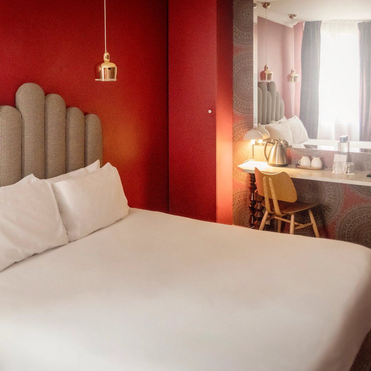 Je zult het comfort waarderen na een dag Parijs! Het essentiële, het nuttige en het aangename in een slaapkamer van 13,5 m2 met een functioneel ontwerp. Een eigen badkamer met douche of bad en WC. Luxe beddengoed, te configureren zoals je wilt op het moment van boeken: tweepersoonsbed of twee eenpersoonsbedden (afhankelijk van beschikbaarheid).